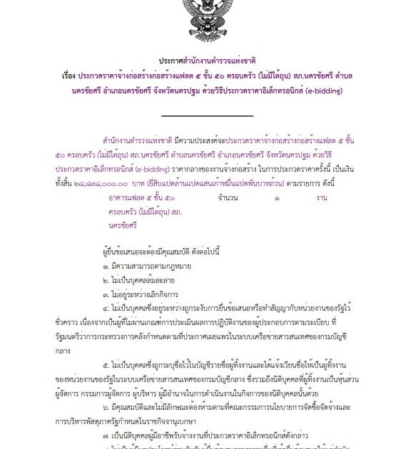 ประกวดราคาจ้างก่อสร้างก่อสร้างแฟลต ๕ ชั้น ๕๐ ครอบครัว