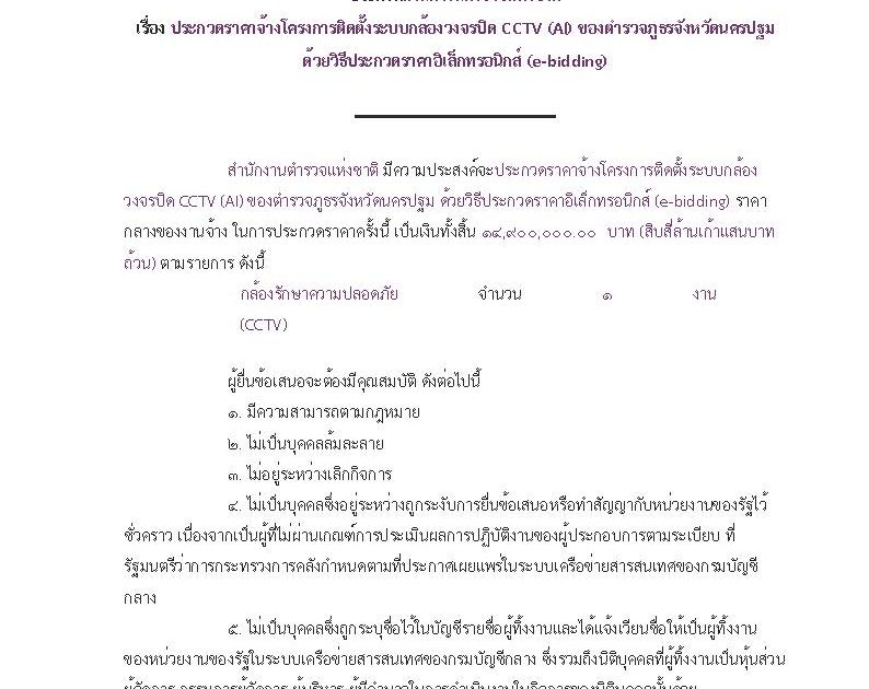 ประกวดราคาจ้างโครงการติดตั้งระบบกล้องวงจรปิด CCTV (AI) ของตำรวจภูธรจังหวัดนครปฐม