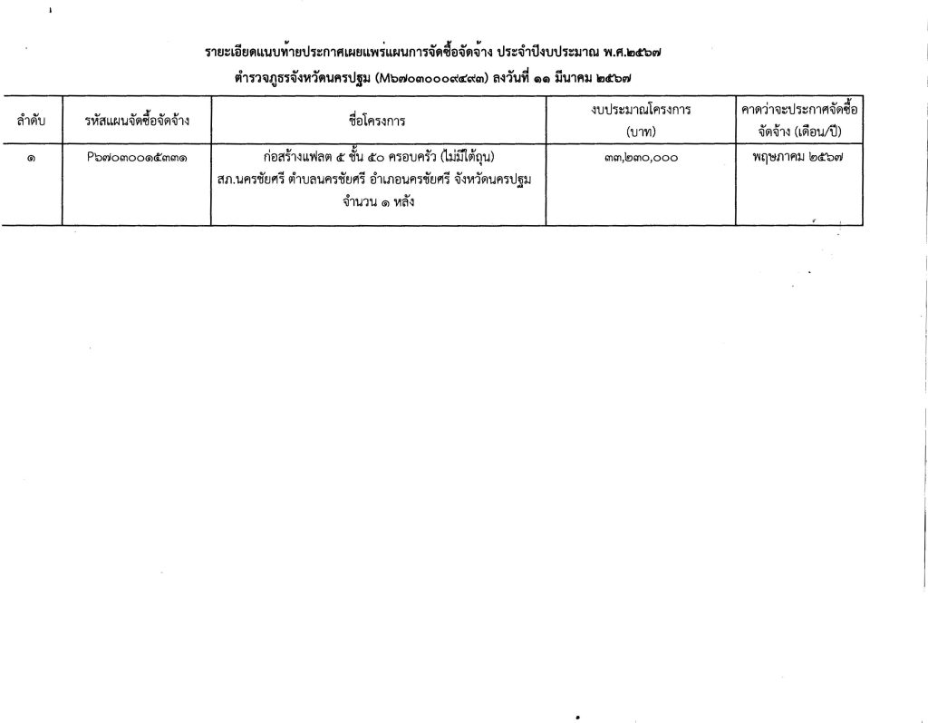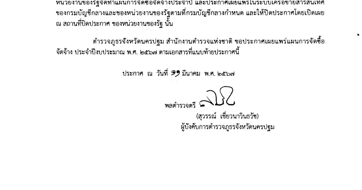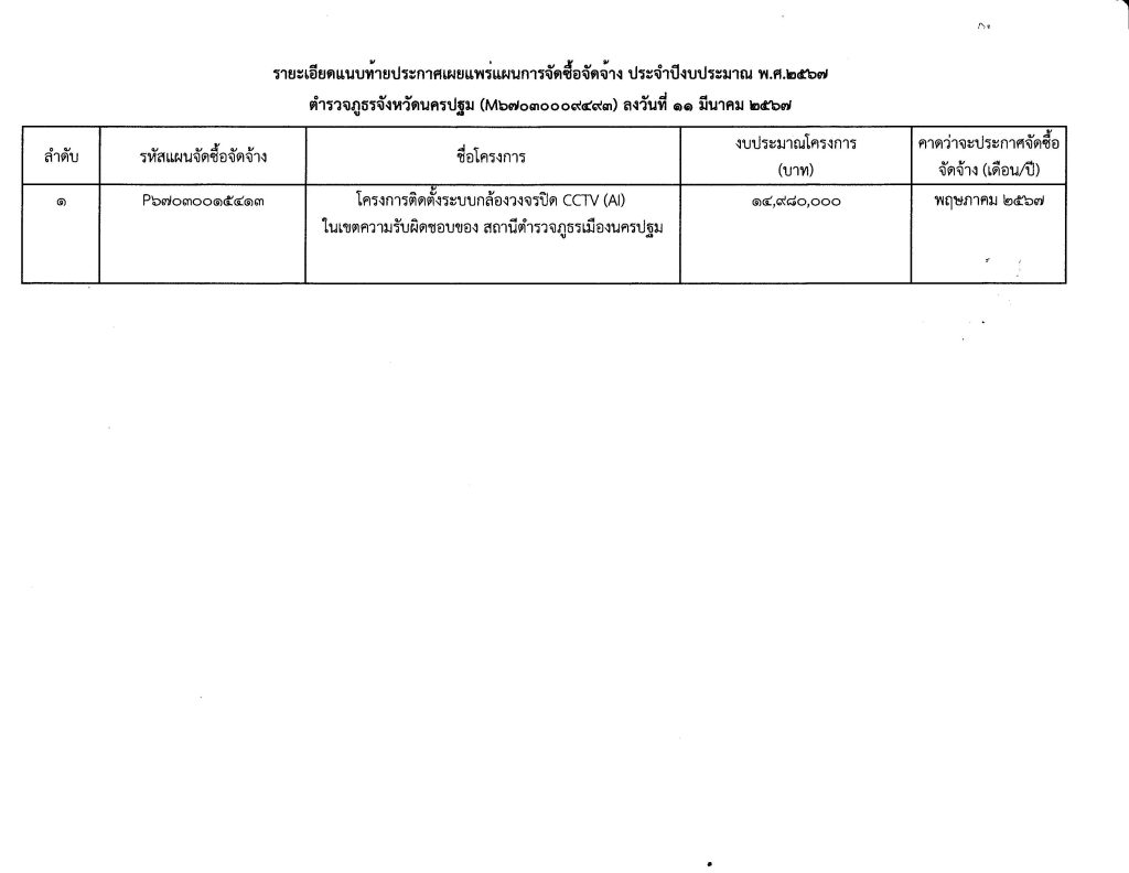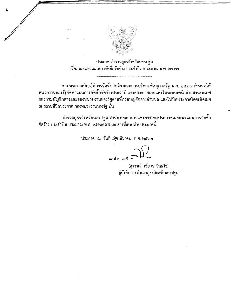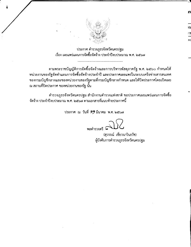 ประกาศเผยแผร่แผนการจัดซื้อจัดจ้าง ประจำปีงบประมาณ 2567